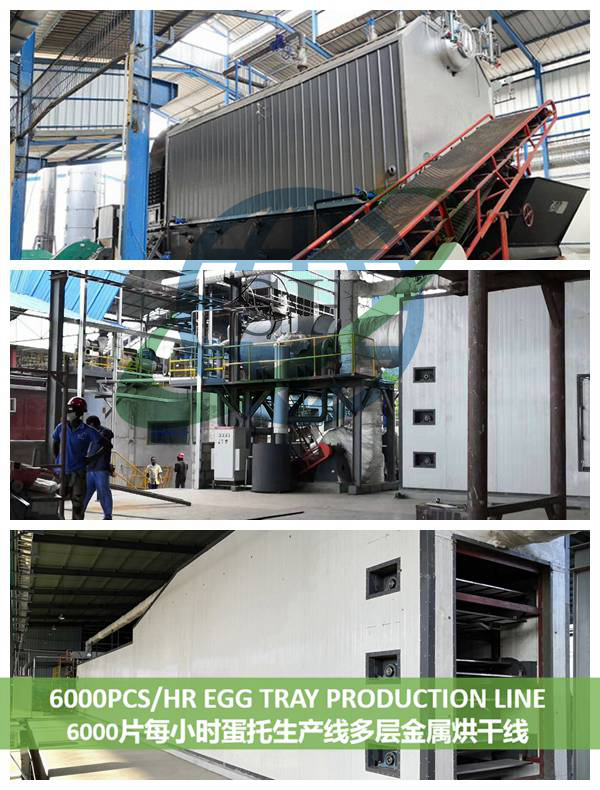 另外,客戶不僅利用上了自家的廢料生產(chǎn)蛋托,還看上了非洲兩種遍地都是的農(nóng)廢——棕櫚殼和椰殼,那么,它們能為蛋托生產(chǎn)做什么呢?答案是制成生物質(zhì)燃燒顆粒作為蛋托烘干能源,在與我司工程師的研究討論后,客戶一并采購了生物質(zhì)鍋爐,該生物質(zhì)燃燒鍋爐可連接蛋托烘干線,以生物質(zhì)顆粒為燃料烘干蛋托。